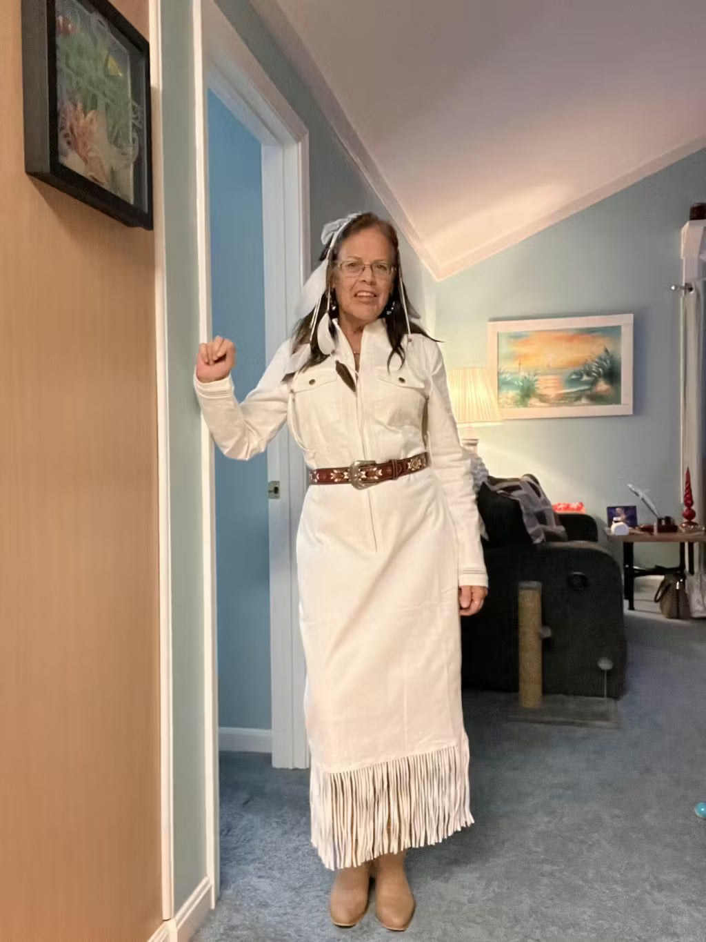 Love the dress it’s a beautiful dress with great details on sleeves and the neckline. Fit is just a little loose at my hips but I’m slightly smaller there so with a belt you don’t need to worry. There is some slight stretch it is comfortable and I love the fringe at the bottom. It is a true white!